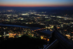 暮れゆく空と、岐阜の街と、長良川の美しい光景。